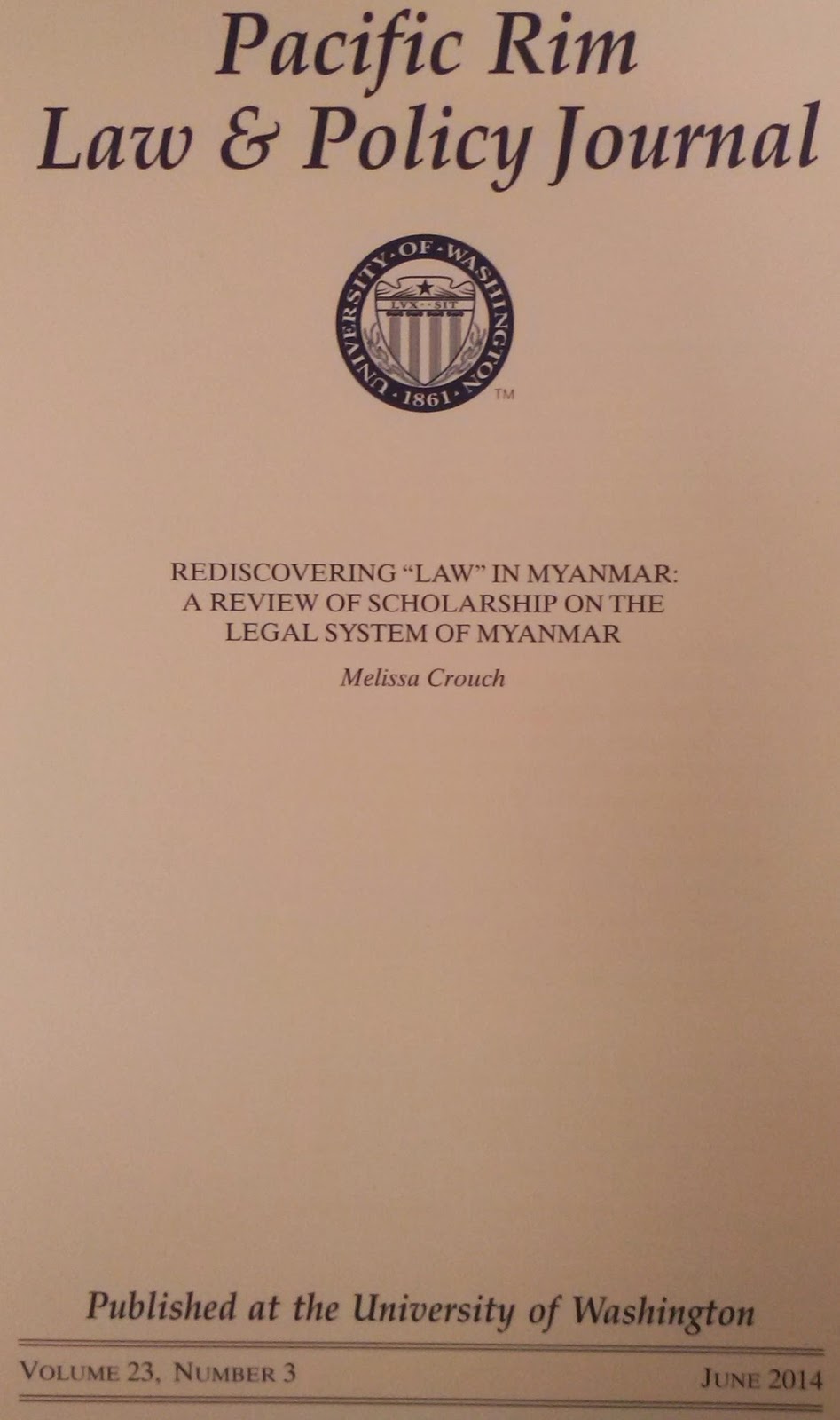 The recent edition of the Pacific Rim Law and Policy Review contains several articles on Myanmar, including on the topic of sovereign wealth funds and responsible investment.