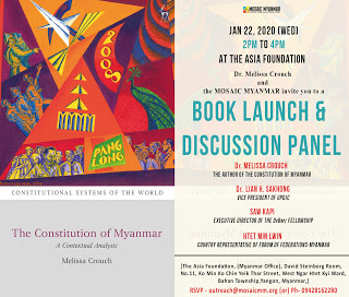 On Wednesday 22 January, there will be a book launch and discussion panel at The Asia Foundation office in Yangon for the launch of The Constitution of Myanmar.